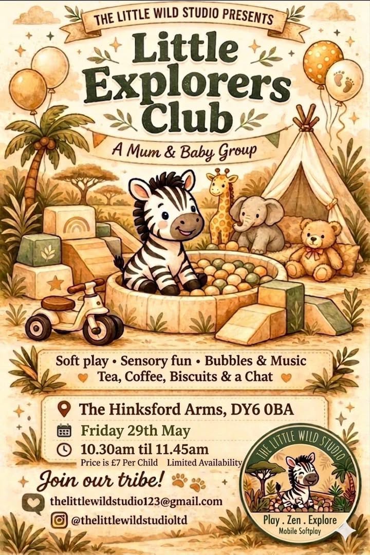 The Little Explorers Club is back! Hosted by The Little Wild Studio, now at The Hinksford Arms in Wall Heath/Swindon is set to be a wild one. Designed specifically for parents and little ones (ages 0–5), it’s the perfect blend of play for them and a much-needed break for you.