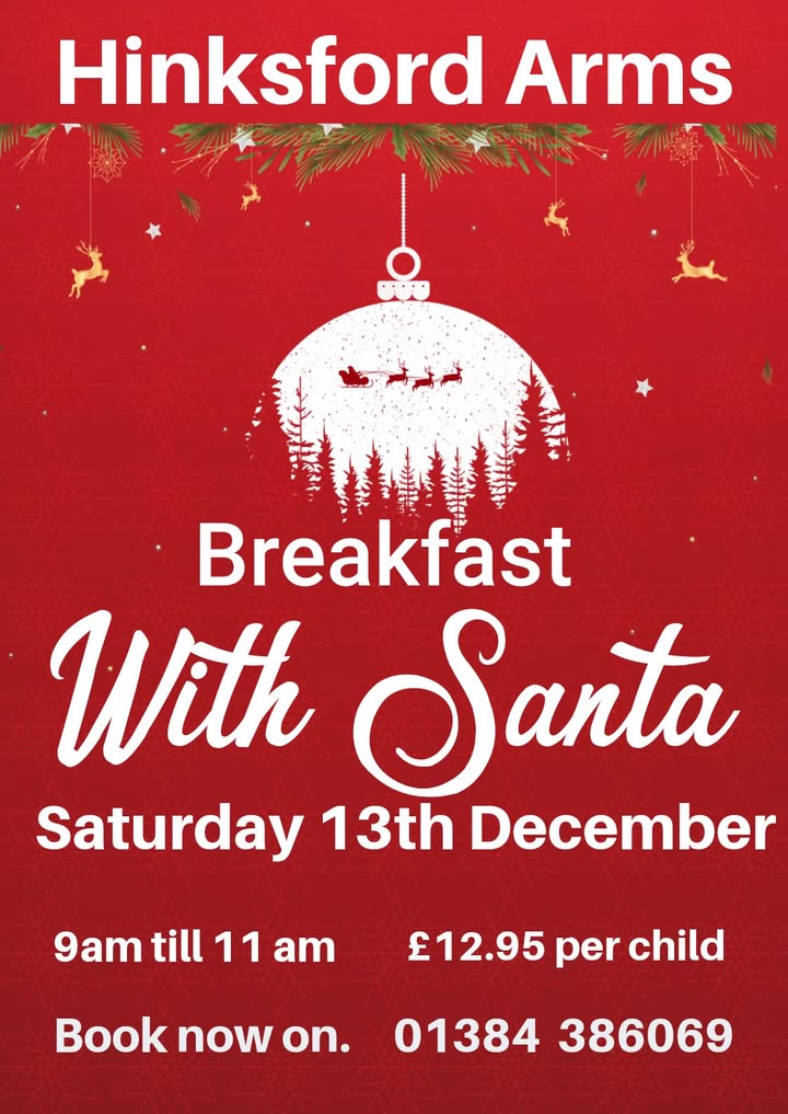 Calling all kids and adults. The BIG man's coming to the Hinksford Arms for Breakfast so book you place now. £12.95 er child Inc Breaksast. Adults £9.49 inc breakfast. Book today only limited spaces. 01384 881980 #hinksfordarms #breakfast #santa